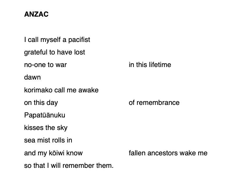 My annual ANZAC Day toikupu ~ remembering the ancestors, since time began, who fought and died in wars. With Reuben gone, to a different kind of war, I have a sense of what mothers must’ve felt when their babies didn’t return.